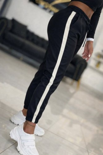 • Kadın yüksek bel lastikli yan şerit detaylı deri pantolon