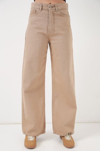 • Bol Paça Yüksek Bel Palazzo Kot Pantolon 6656 Vizon